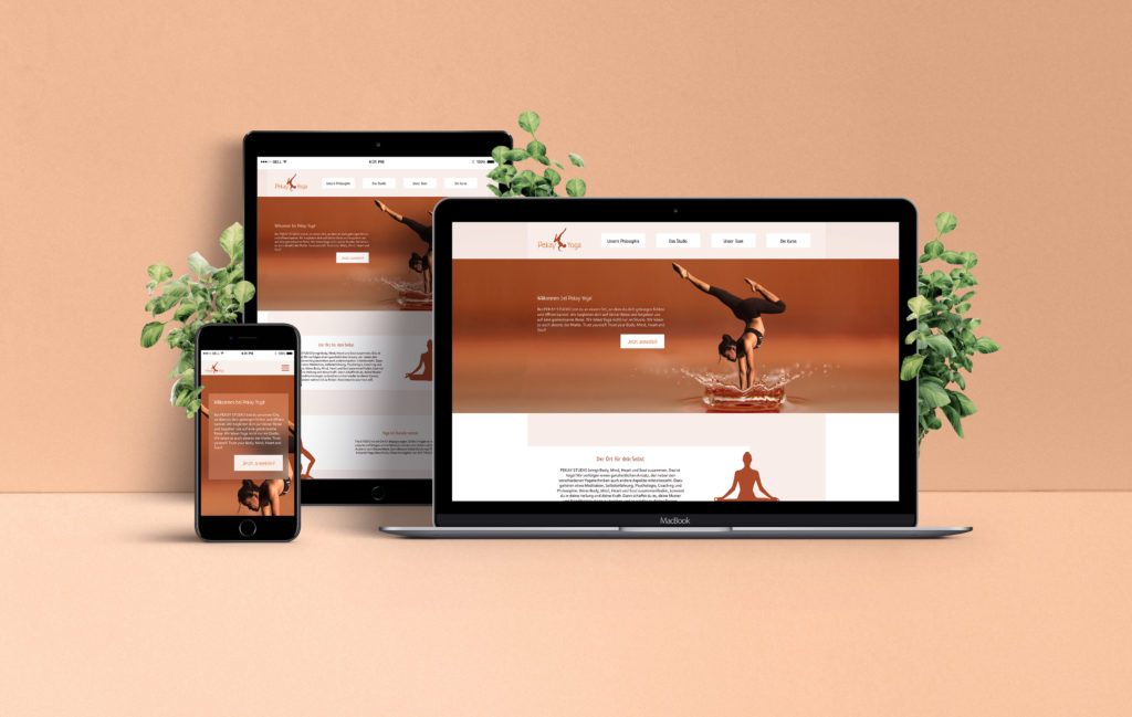- Startseite mit Überblick und Teasern, die das Leistungsportfolio aufzeigen: Was bietet das Studio an: Kurse, Workshops, Philosophie, Warum Yoga?, Fakten …